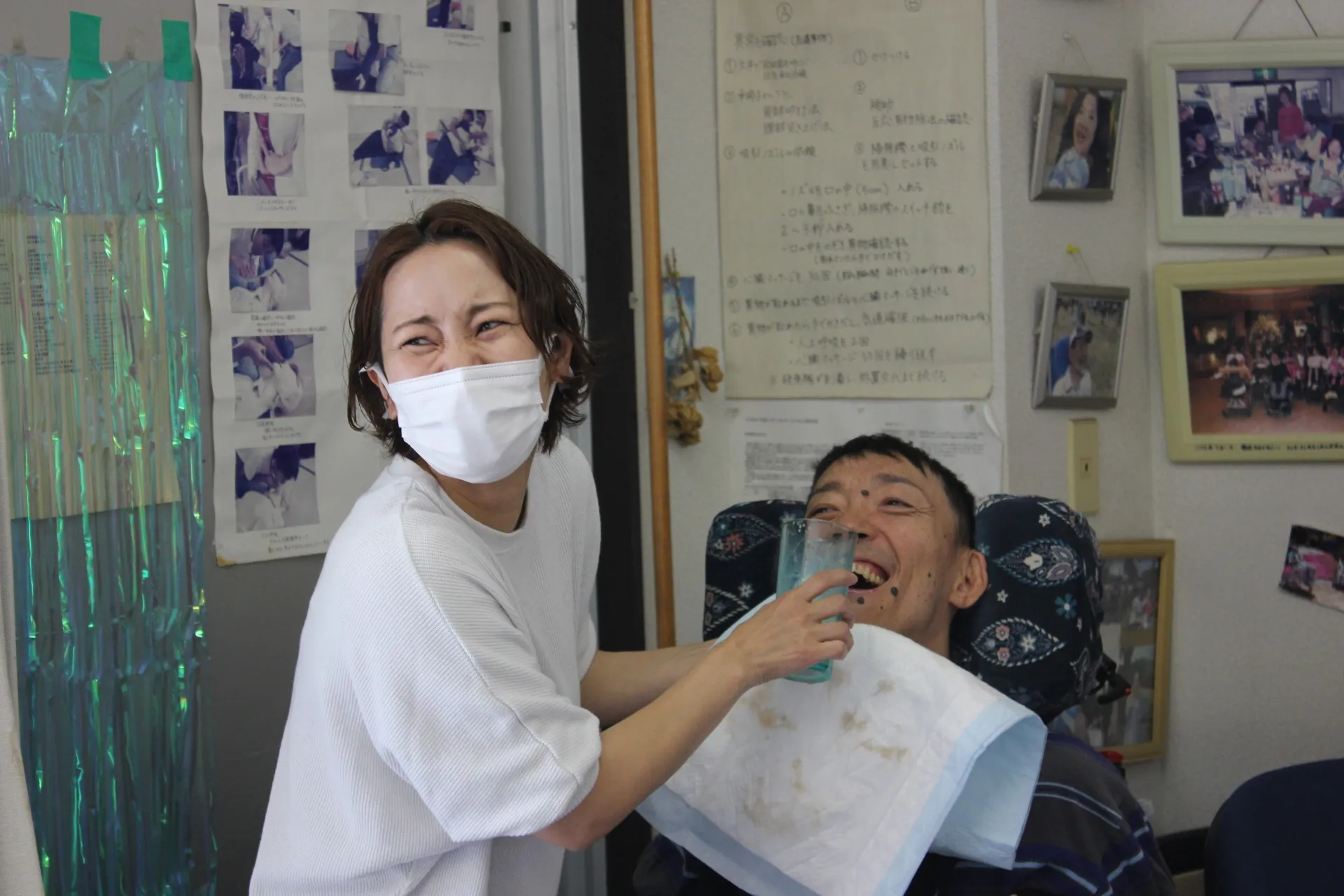 現場でのケアを一人で任されることはなく、基本的に先輩スタッフと二人一組になって日々のお仕事を行っていただくため、慣れない内でもサポートや指示を受けながら安心して働いていただけます。入浴や排泄といった身の回りの介助は体力が必要な場合もあるため、一対一でケアを行うのは大変なことです。ご利用者様の快適で安心な生活のためにも、スタッフの安心のためにも、二人一組体制でのサービス提供を続けてまいりました。